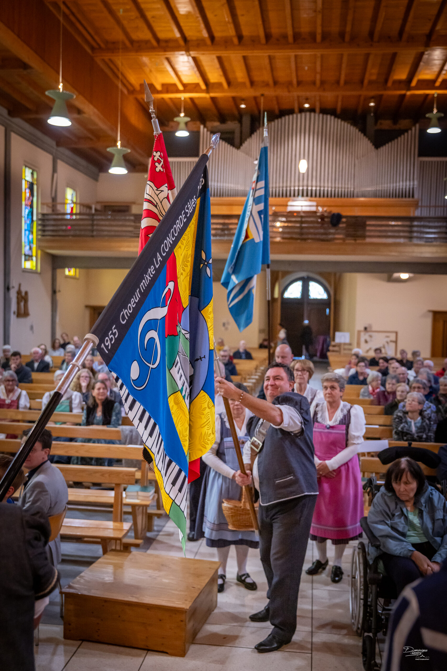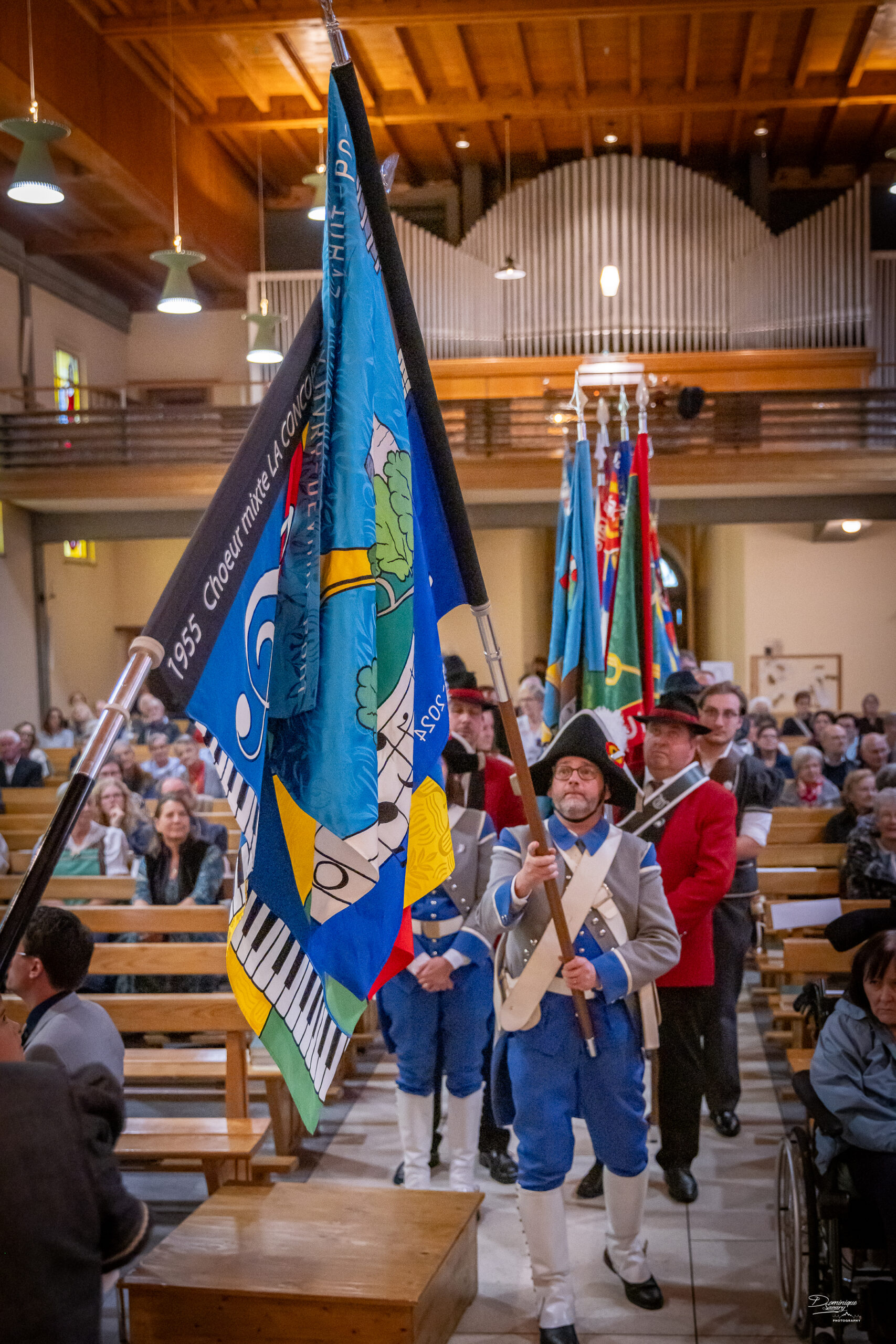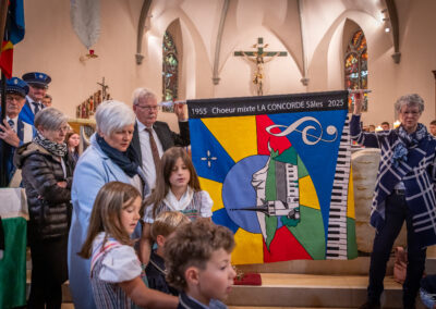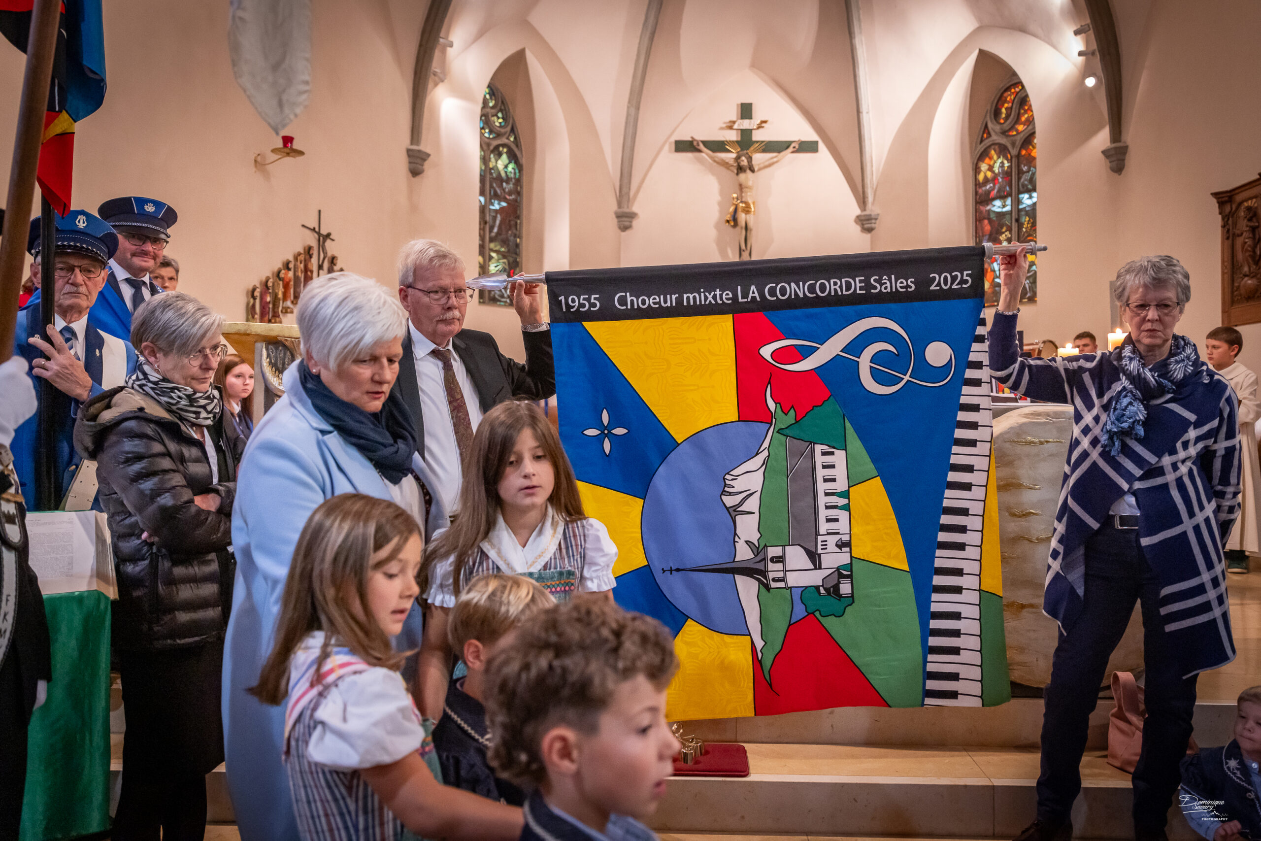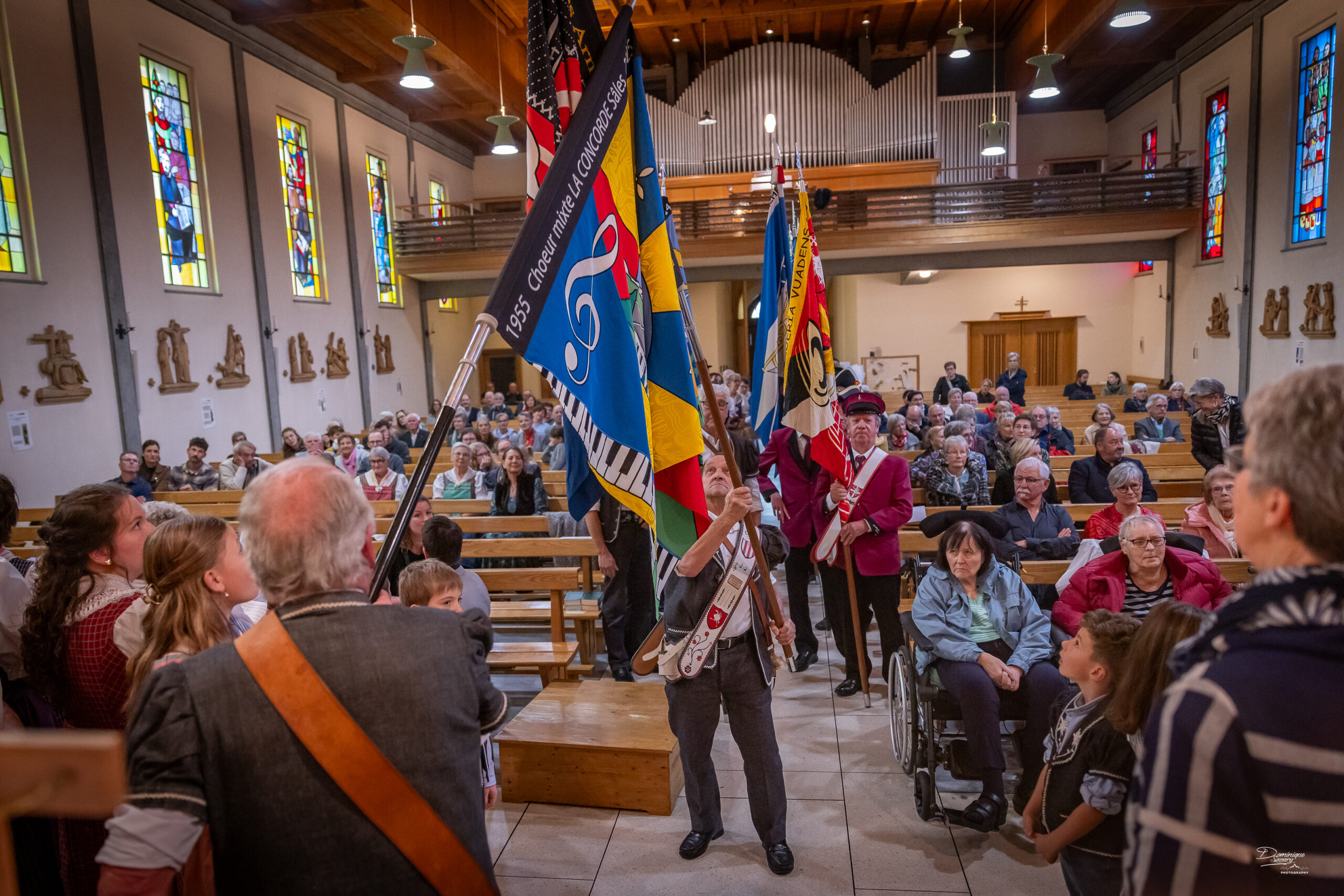 Ce samedi, la Fanfare « Union Paroissiale » a fièrement inauguré ses nouveaux costumes, et le Chœur mixte « La Concorde » a dévoilé sa nouvelle bannière. Entre bénédiction, musique et moments de partage, la journée a été remplie d’émotion, de rires et de belles rencontres. Retour en images sur cette célébration pleine de couleurs et de tradition