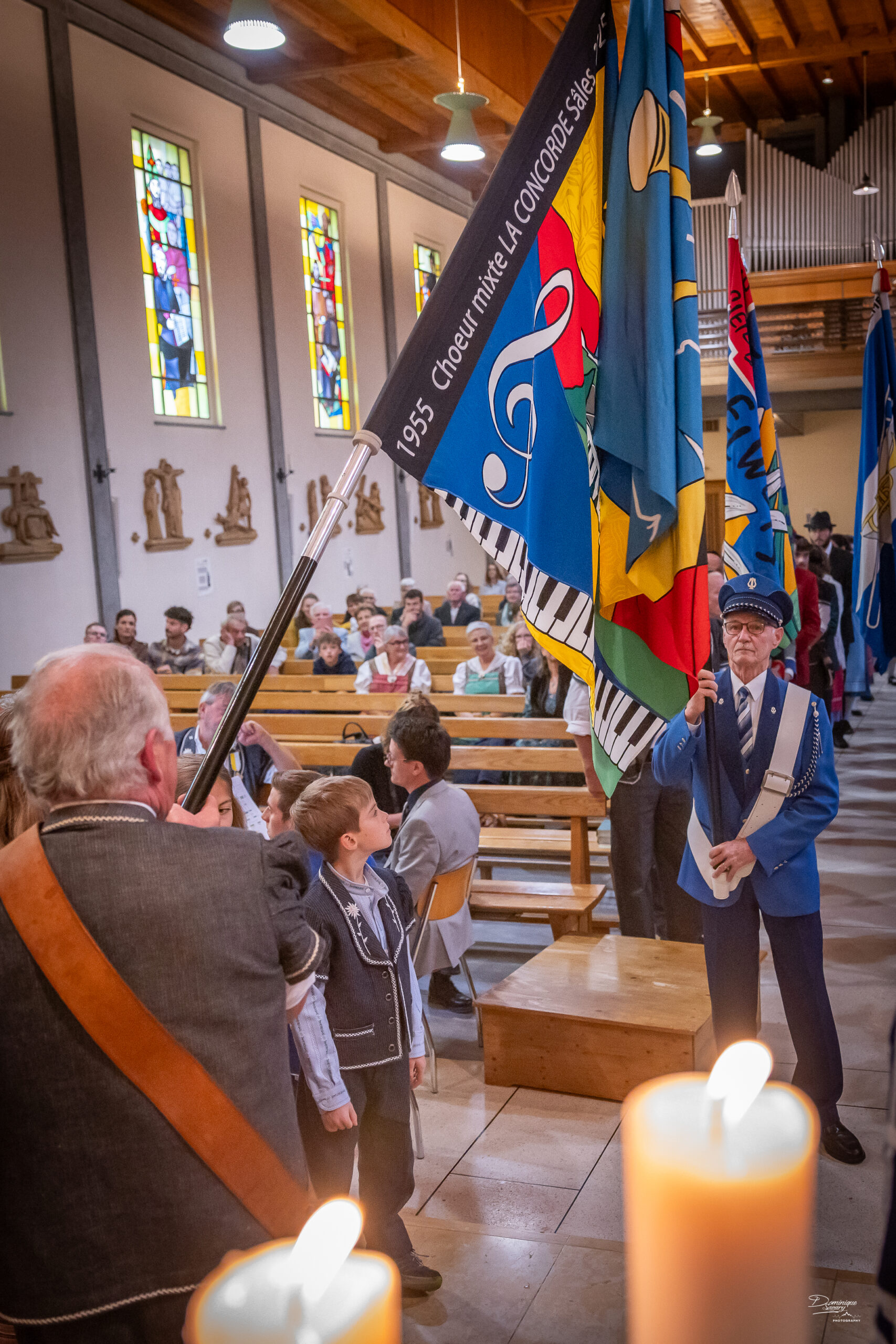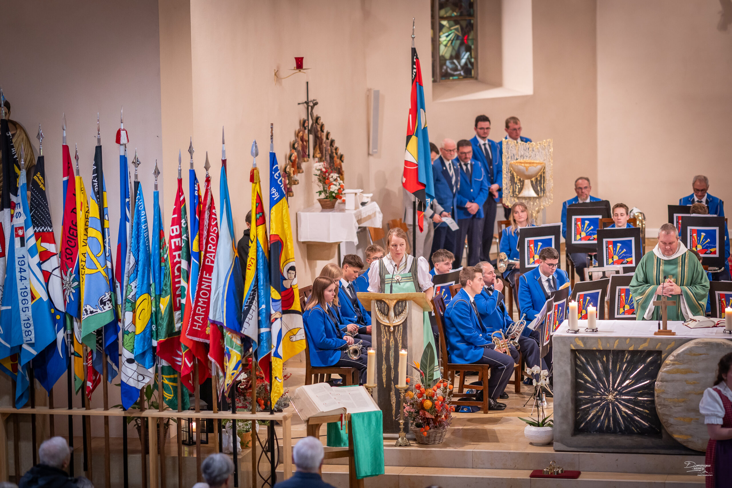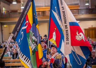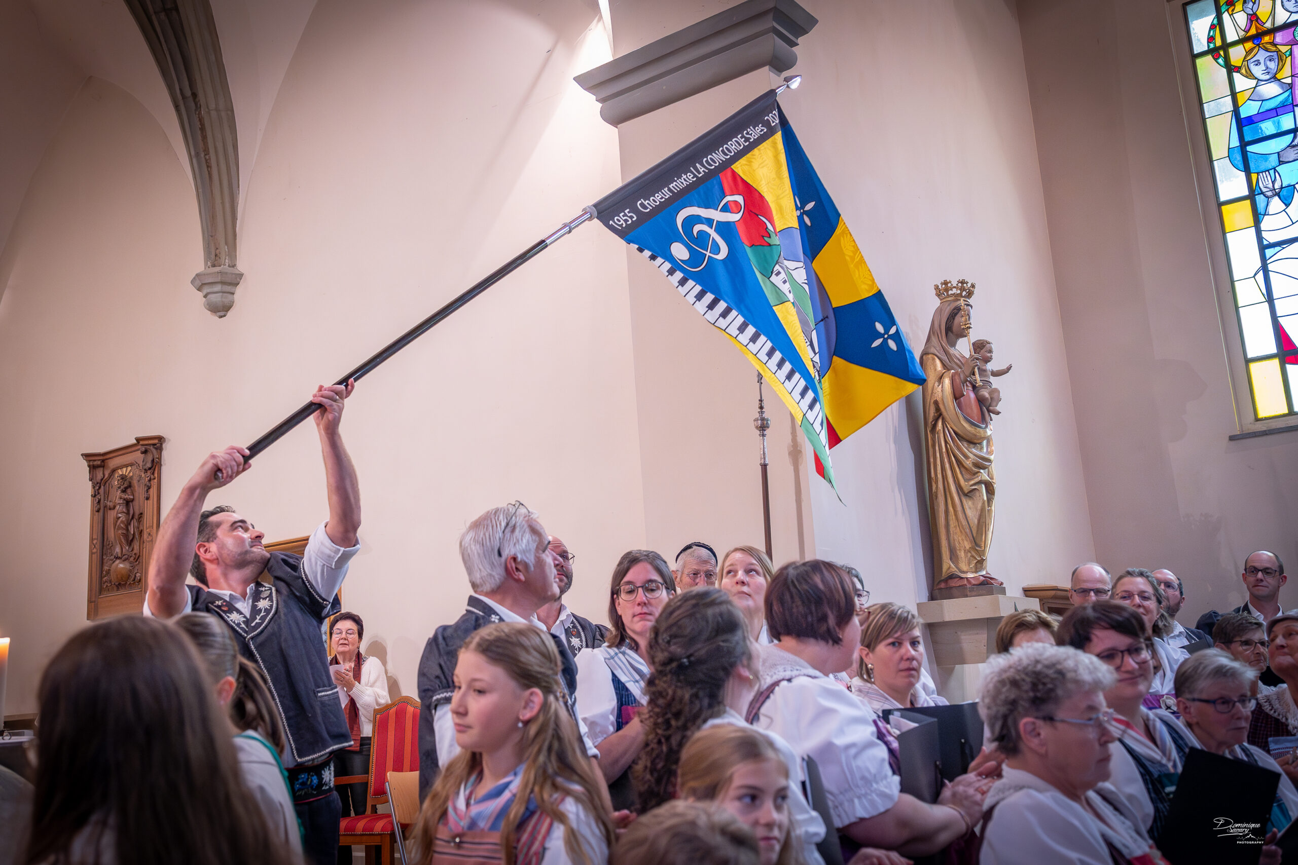 Ce samedi, la Fanfare « Union Paroissiale » a fièrement inauguré ses nouveaux costumes, et le Chœur mixte « La Concorde » a dévoilé sa nouvelle bannière. Entre bénédiction, musique et moments de partage, la journée a été remplie d’émotion, de rires et de belles rencontres. Retour en images sur cette célébration pleine de couleurs et de tradition
