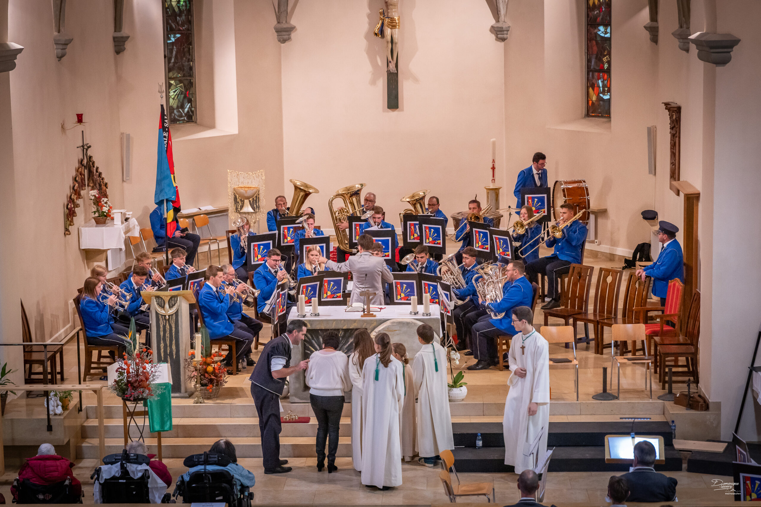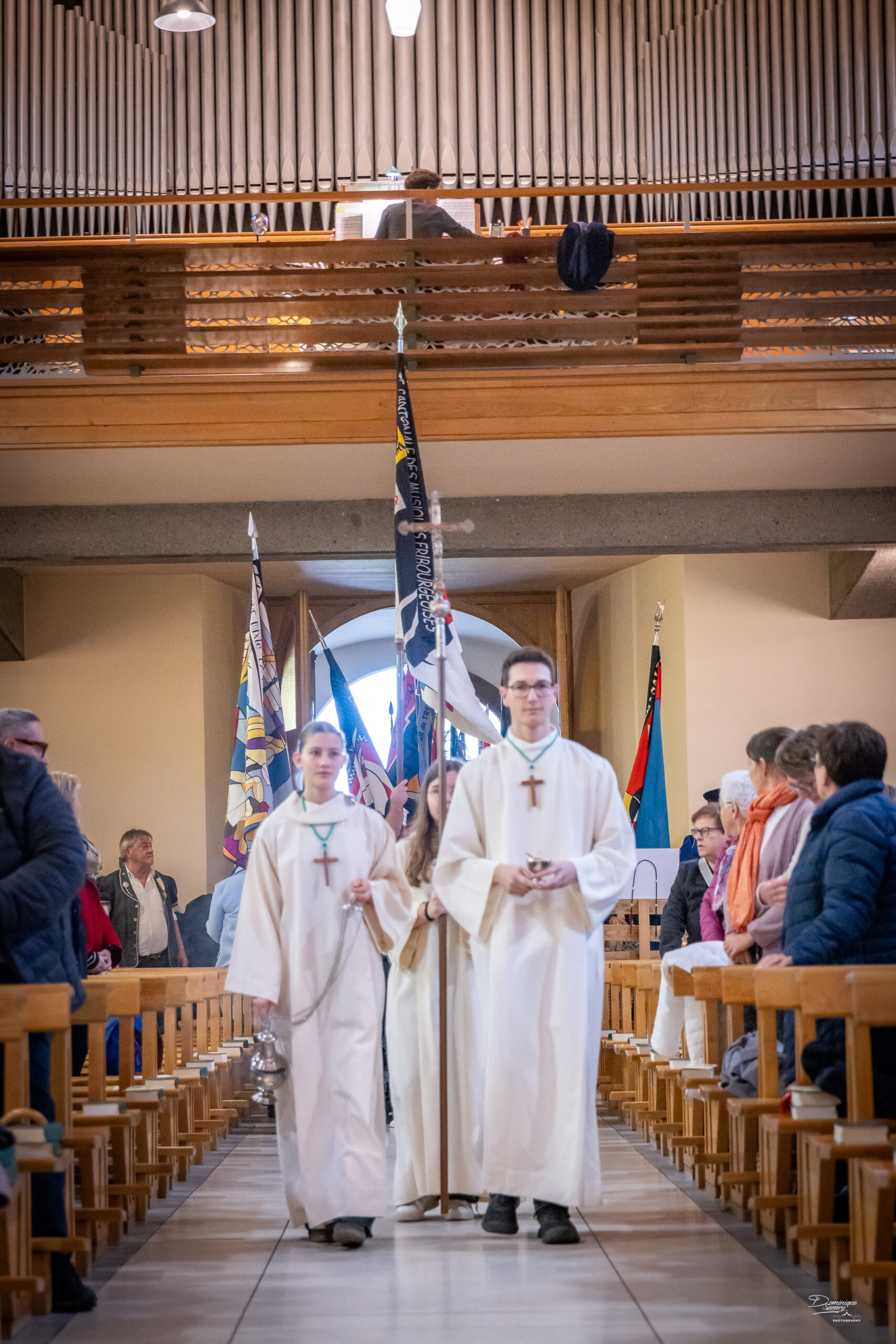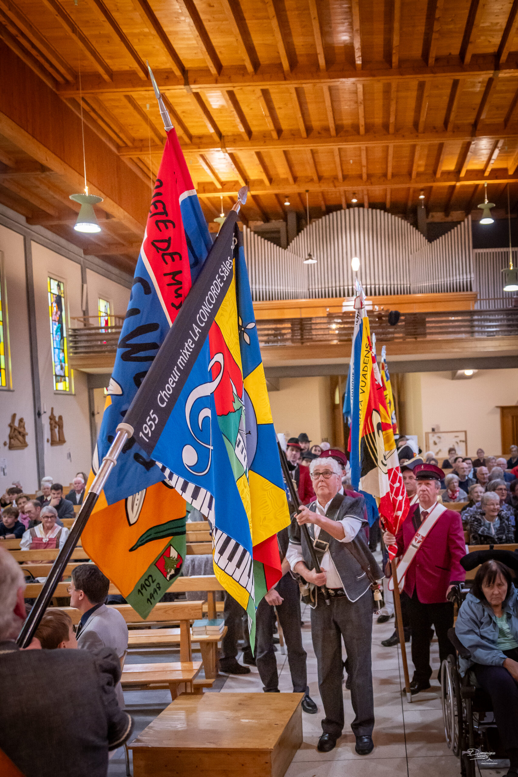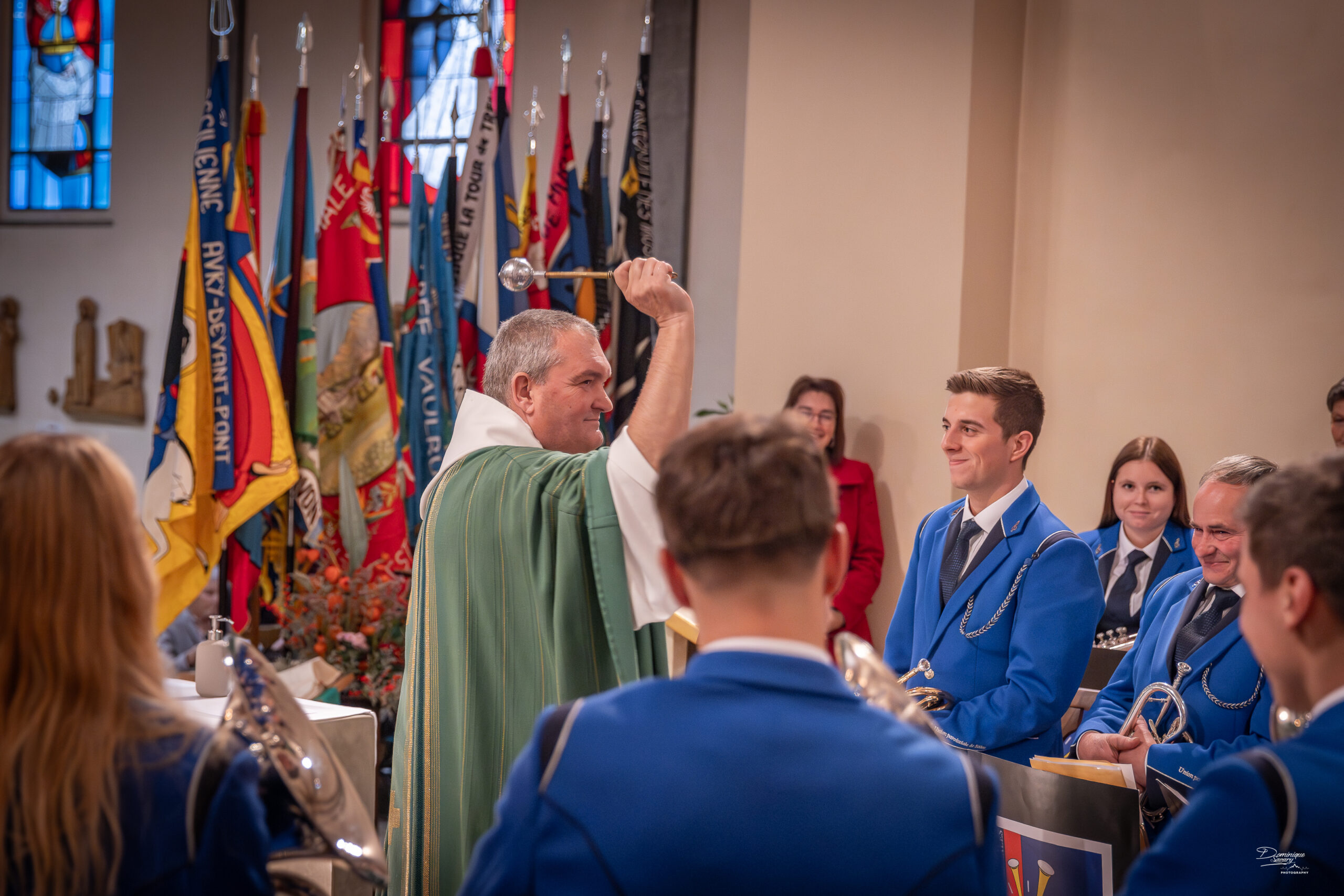 Ce samedi, la Fanfare « Union Paroissiale » a fièrement inauguré ses nouveaux costumes, et le Chœur mixte « La Concorde » a dévoilé sa nouvelle bannière. Entre bénédiction, musique et moments de partage, la journée a été remplie d’émotion, de rires et de belles rencontres. Retour en images sur cette célébration pleine de couleurs et de tradition